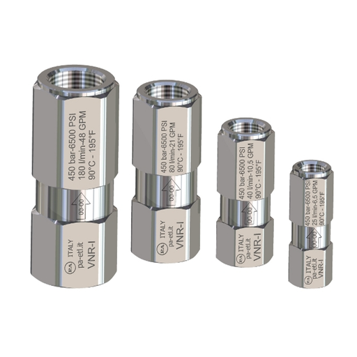 PA spätný ventil nerez VNR-I 1/4FF Bsp, 400 Bar 60.2030.00